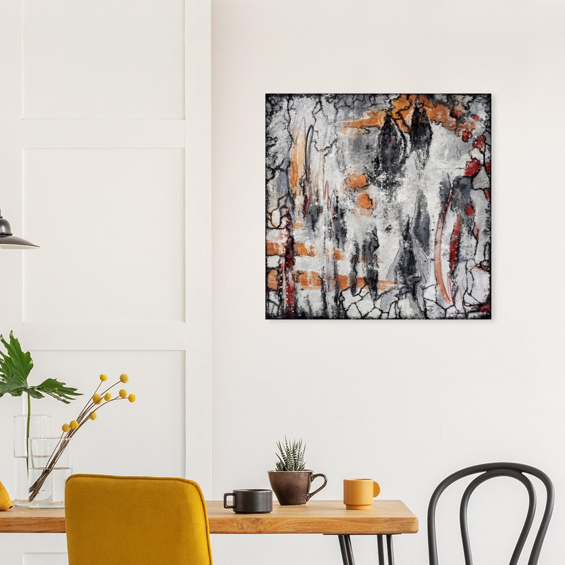 “Chaos” By Manar Mouafak is a raw expression of turbulence and transformation. The restless interplay of black, white, and fiery tones captures the intensity of disorder giving birth to new forms. This artwork speaks to those who find beauty in unpredictability, offering a bold centerpiece that brings energy and emotional depth into any space.
