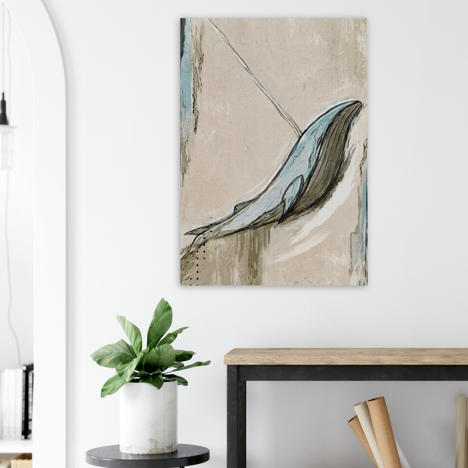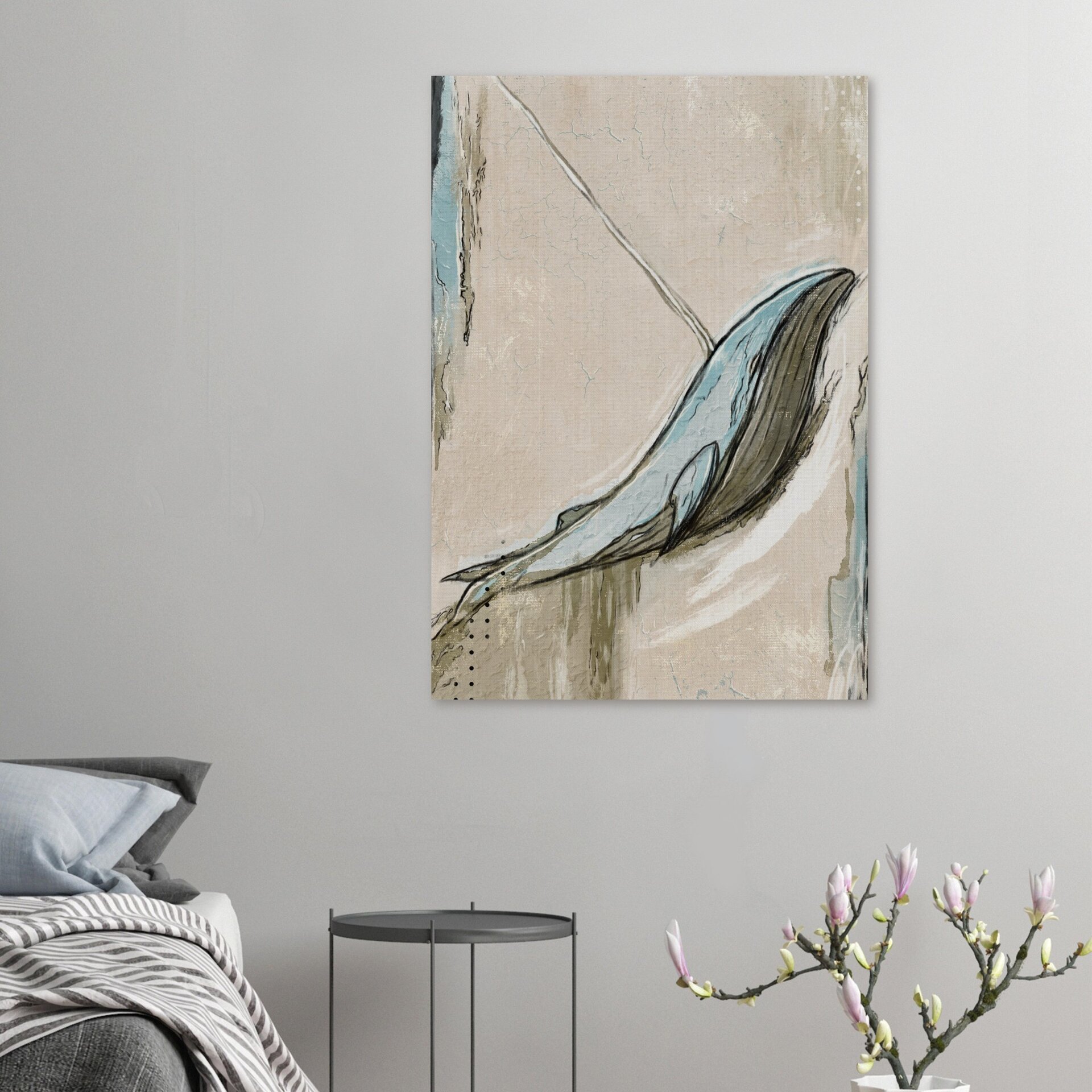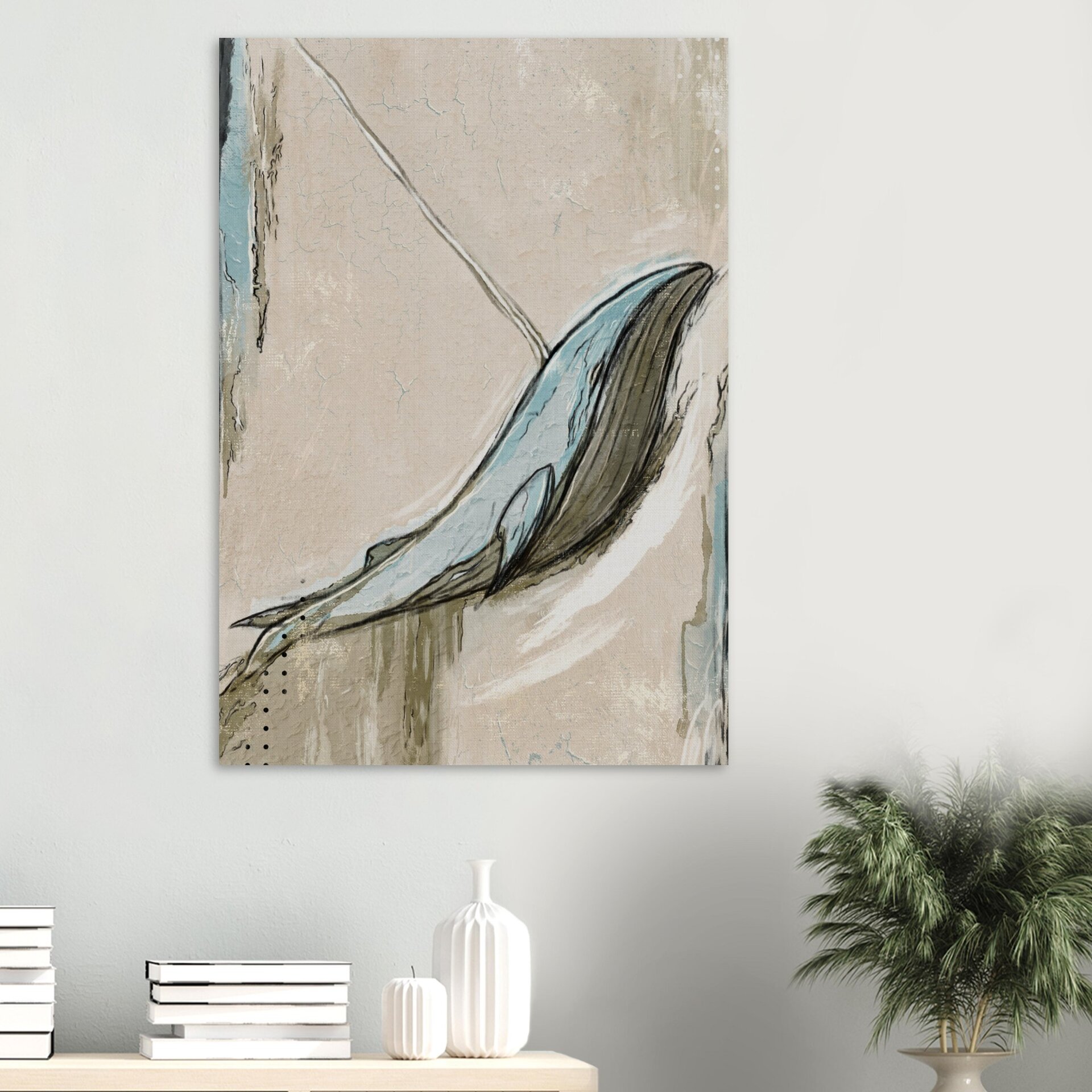 ”Whispering Whale” By Manar Mouafak is a dreamlike journey into the depths of silence and imagination. The gentle curves and muted tones of the whale embody both strength and fragility, carrying with them a sense of mystery and calm. This artwork is perfect for collectors and art enthusiasts who wish to bring a touch of serenity and poetic depth into their living space.